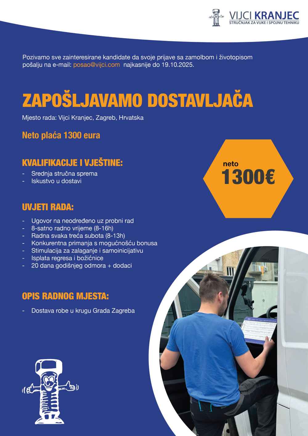 - Poželjno prethodno iskustvo na sličnim poslovima