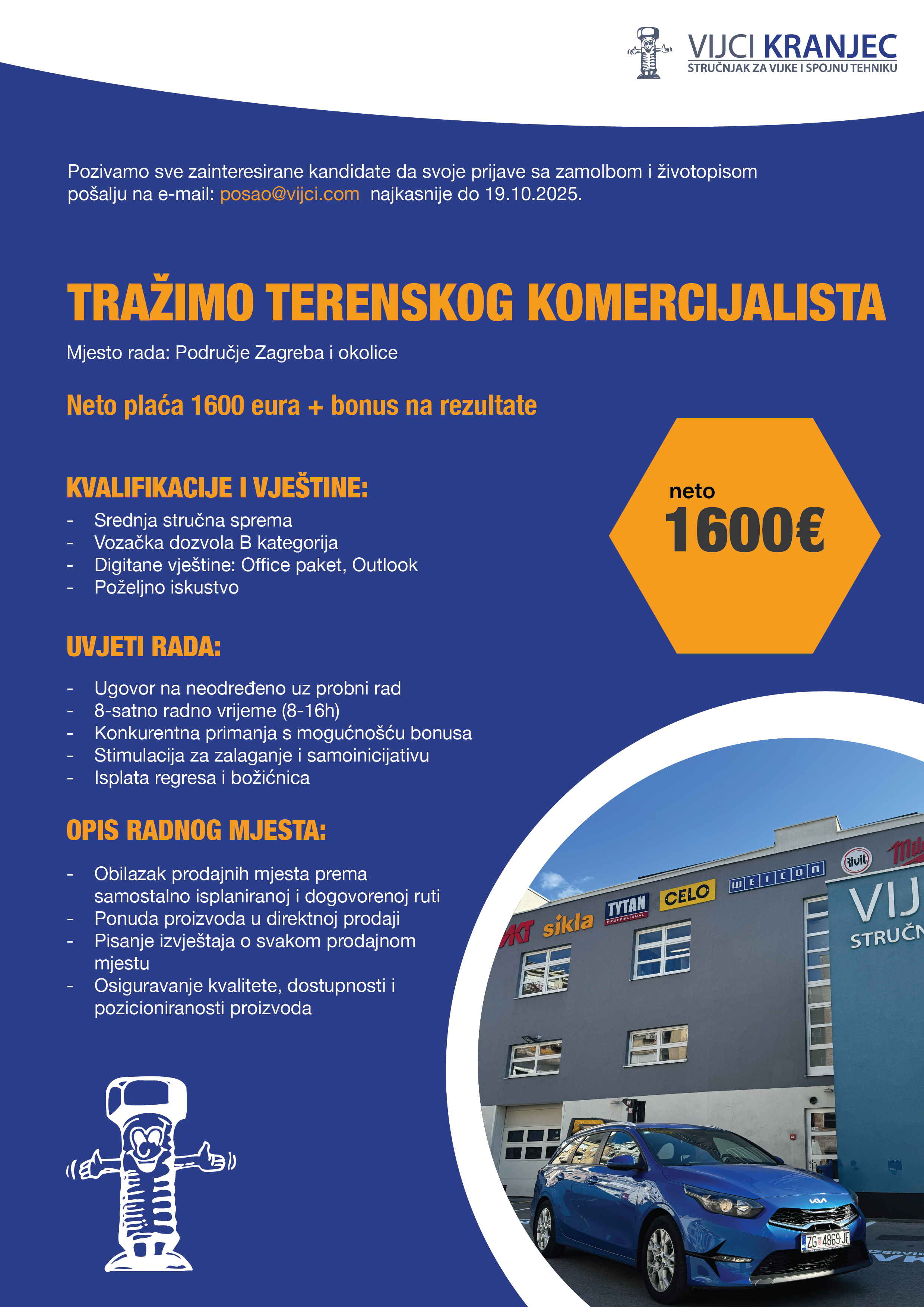 Terenski komercijalist Zagreb i okolica (m/ž)