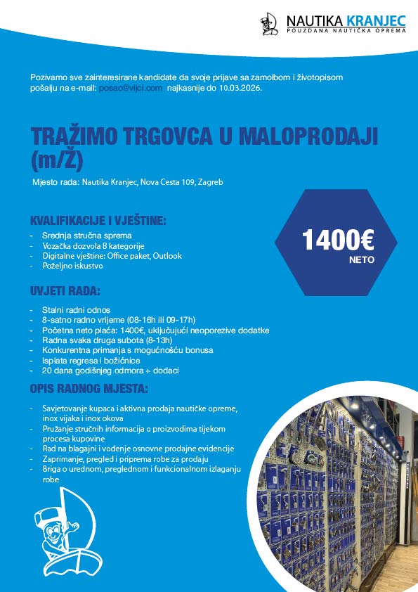 Mjesto rada: Nautika Kranjec, Nova Cesta 109, Zagreb