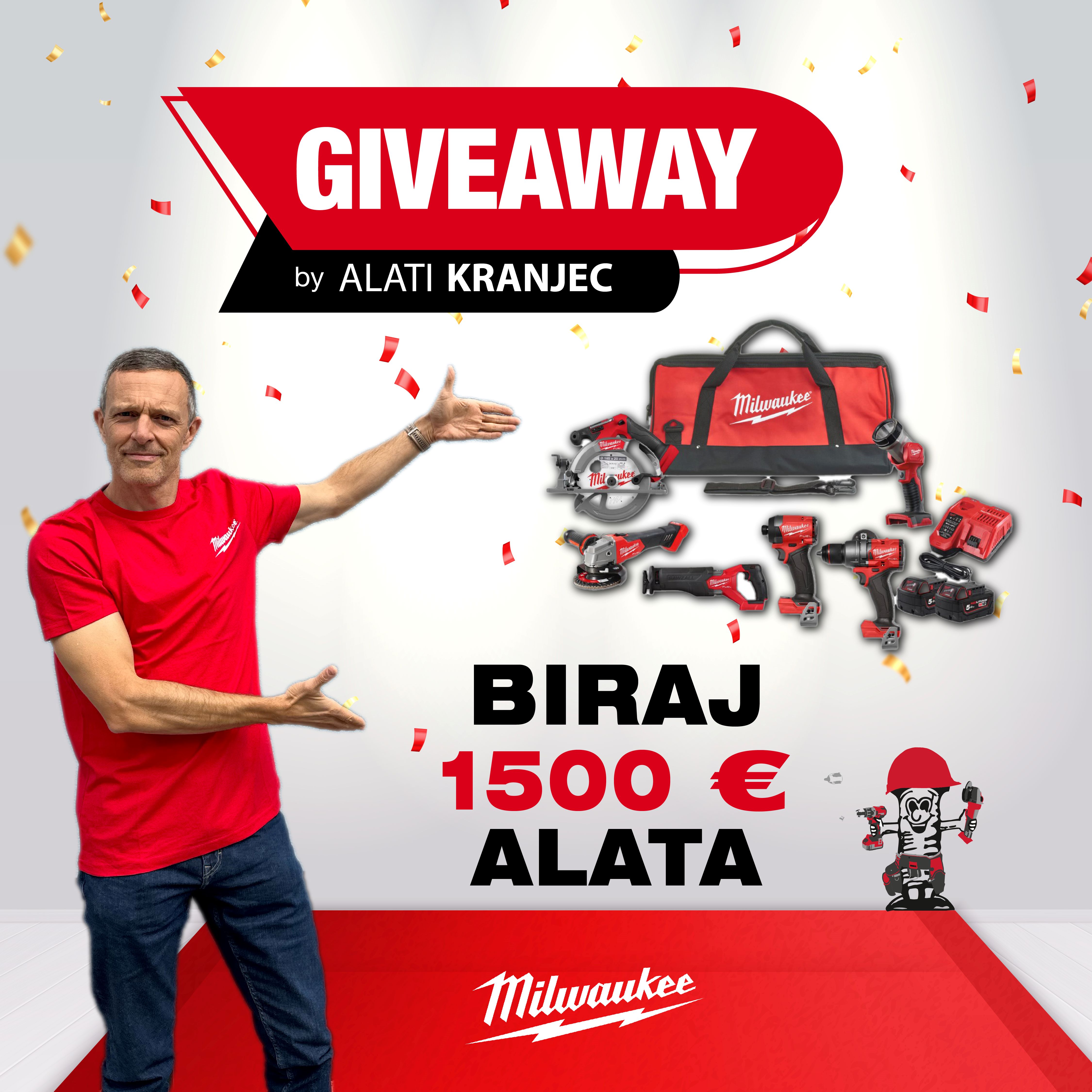 Nagrada: jedan (1) sudionik osvaja 1.500 € vrijednosti Milwaukee alata po vlastitom izboru. (Vrijednost sa uključenim PDV-om)