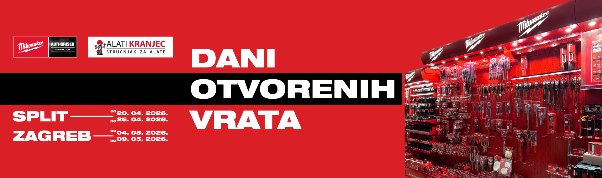 Vijci Kranjec, ovlašteni uvoznik i distributer Milwaukee alata za Hrvatsku, otvara vrata svog Centra u Splitu za tjedan koji se ne propušta. Dođite osobno, isprobajte alat uživo i iskoristite ekskluzivne popuste koji vrijede samo za vrijeme Dana otvorenih vrata.