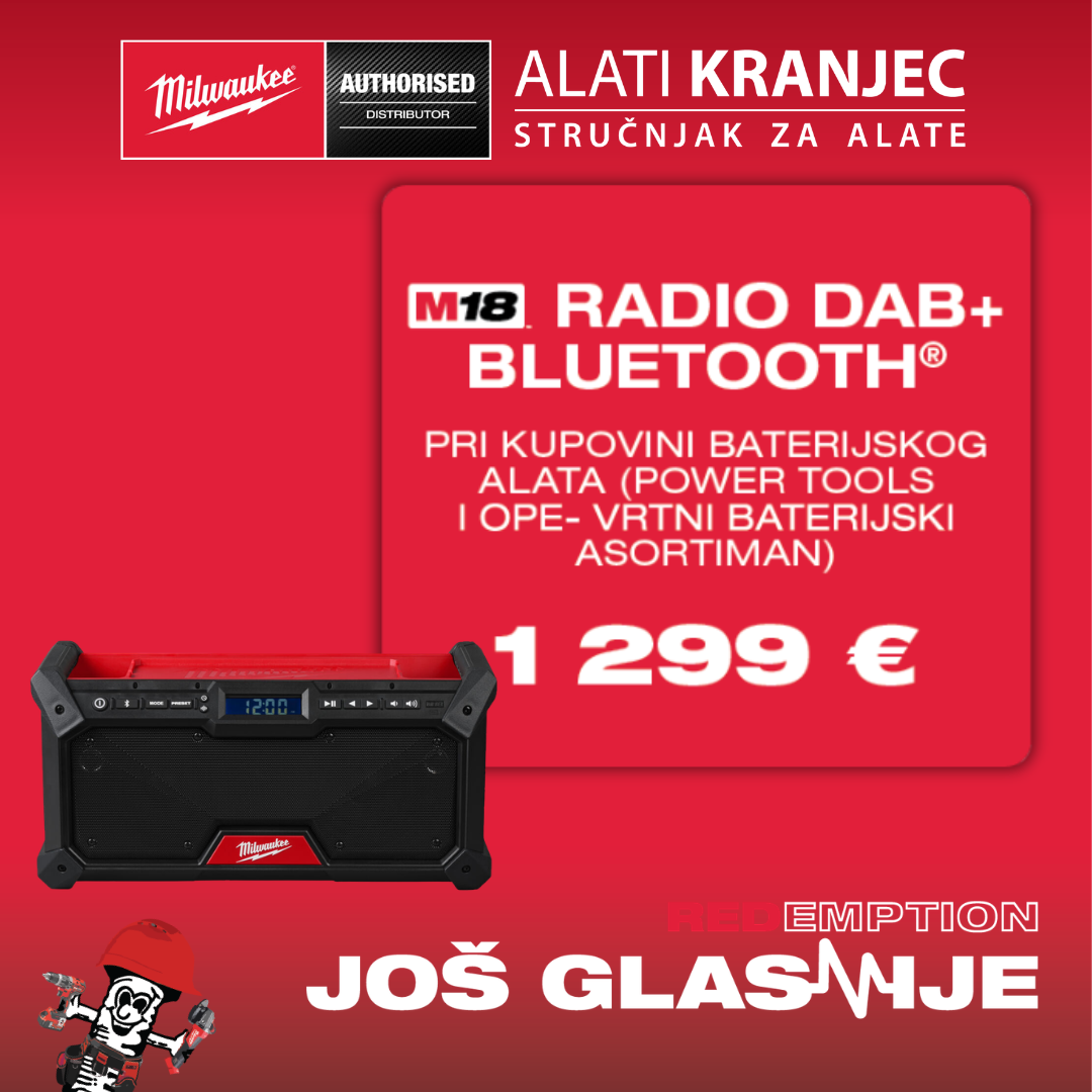 Milwaukee® je pokrenuo jednu od najatraktivnijih promocija ove godine. Kupi odabrani Milwaukee® baterijski alat i osvoji Radio ili Bluetooth zvučnik za samo 1€ bruto!