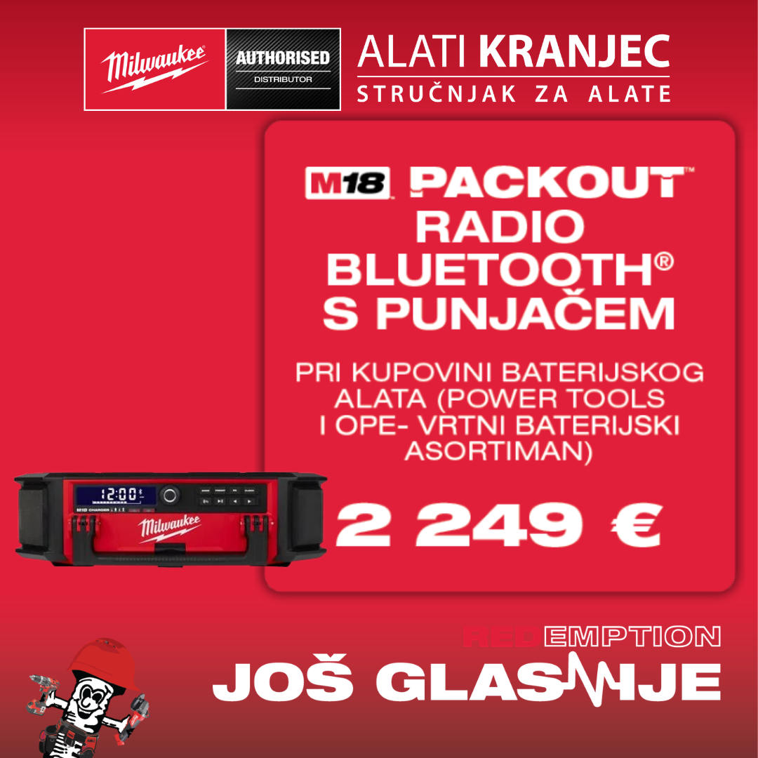 Promocija se provodi u skladu s Pravilnikom o sudjelovanju u promotivnoj prodaji „Redemption JOŠ GLASNIJE". Sve navedene cijene su bruto iznosi. Organizator nagradne prodaje je Techtronic Industries Eastern Europe d.o.o. Detalji i pravilnik dostupni su na hr.milwaukeetool.eu/redemption-amplified.